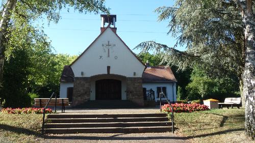 Die Einsegnungshalle, ein Rechteckbau mit Satteldach, wurde 1951 erbaut und verfügt über 20 Sitzplätze.